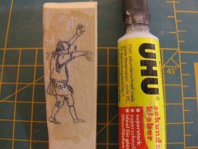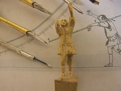 Sie sehen hier die einzelnen Arbeitsschritte zur Herstellung einer Schnitzfigur.